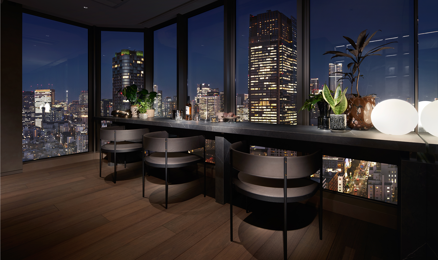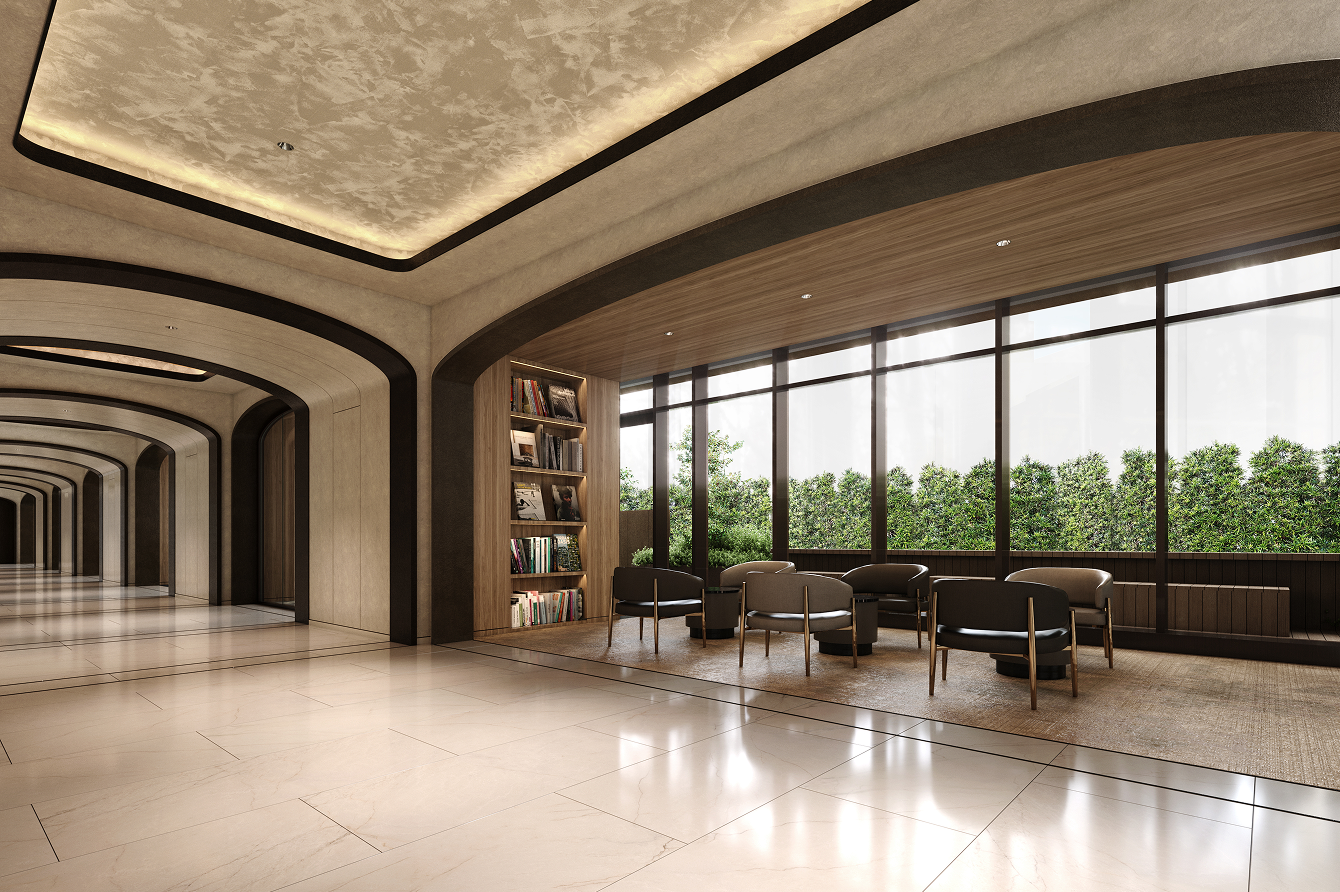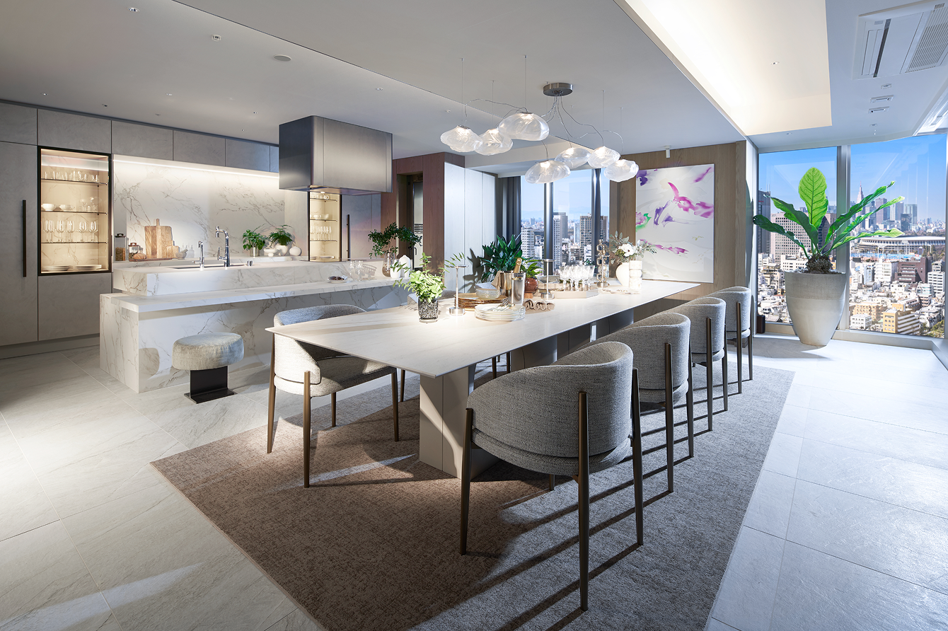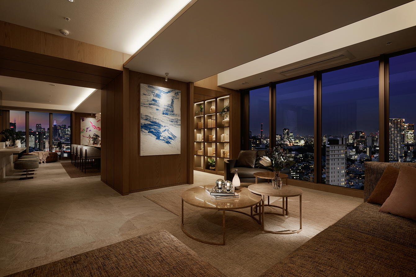 連なるラウンジスペースを設けてラグジュアリーながら落ち着いた設計にしています。各ラウンジにはテーマとアートを設け、その時々の気分で楽しめる空間をご用意。各ラウンジはテラスに面しており、移ろう緑と光の表情もお楽しみいただけます。
