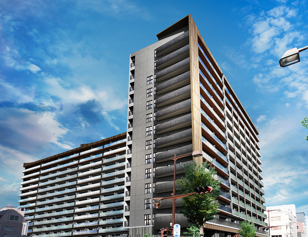長野県初のBrilliaとして、『長野の地で想いを紡ぎ心を繋ぐレジデンス』というコンセプトを掲げ、この地の記憶を受け継ぎ、再び街に賑わいをもたらす住まいを目指しました。外観は、善光寺の門前町として栄えた歴史や駅舎の意匠を継承したデザインに。顔となる基壇部分には水平に延びた庇の存在感と、細部まで丁寧に作り込まれた繊細さを調和させました。歴史ある街並みに溶け込みながら、新たなシンボルとなる風格を持たせています。