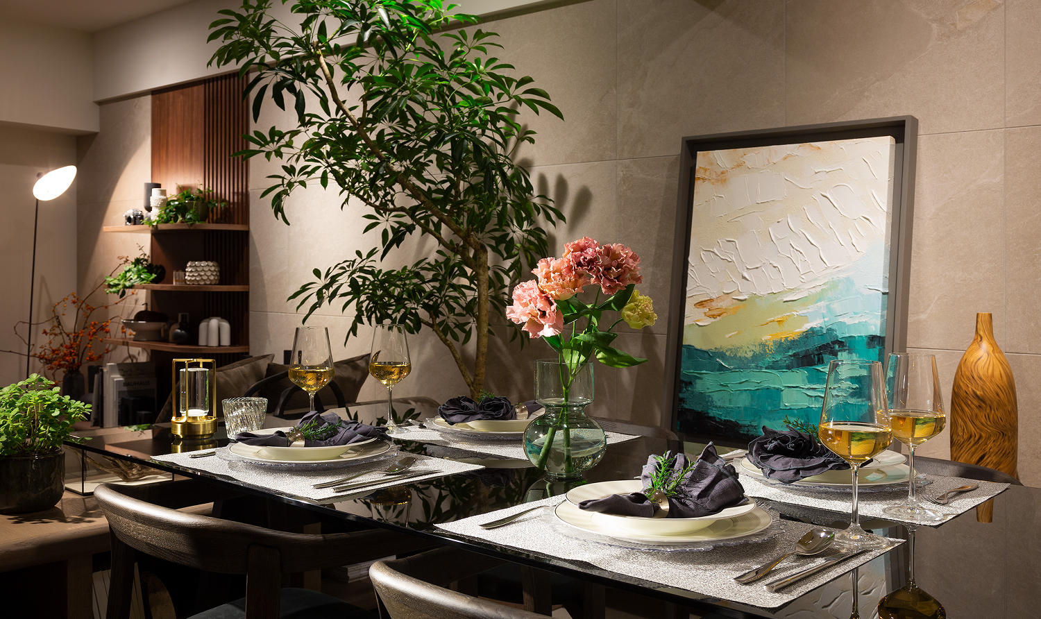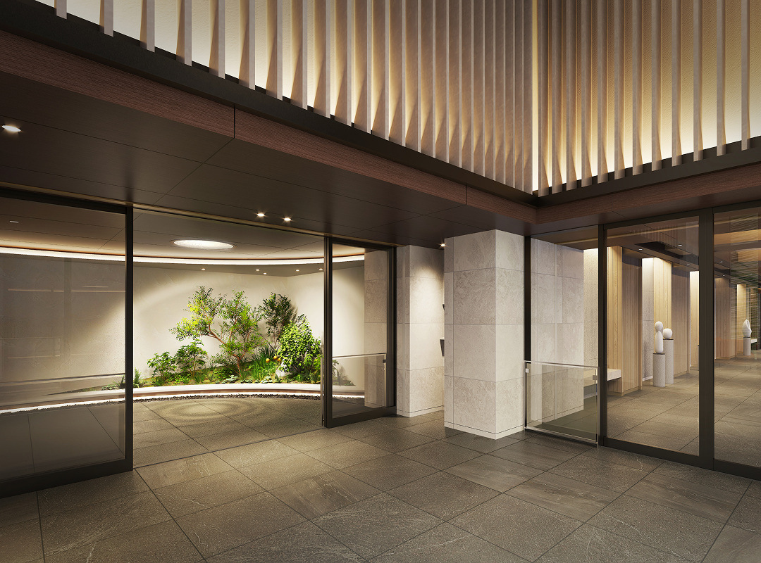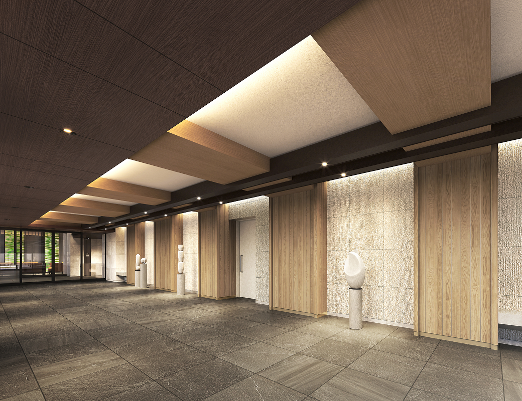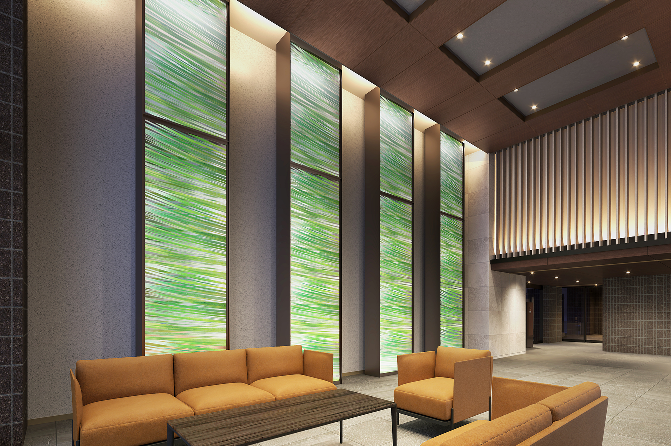 その土地が歩んできた歴史を読み解き、住まう方々の暮らしを想像しながら、デザインに昇華させていく。「Brillia 方南町」は『豊かな自然を創出し、洗練された外観と癒しの空間』をデザインテーマに設定。2層吹抜けのエントランスホールには、自然のモチーフを繊細に表現したガラスアートを、約16mのアートコリドーには、石素材のアートが設置されています。