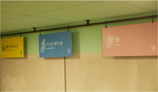 「通いたくなるごみ置き場」をコンセプトに、 明るい色調やピクトグラムで親しみやすく、 分かりやすいごみ置き場をデザイン。