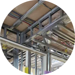 二重天井の骨組みは「軽量鉄骨」と呼ばれる金属の筒で組まれており、内部には配管や電気配線等が通っています。